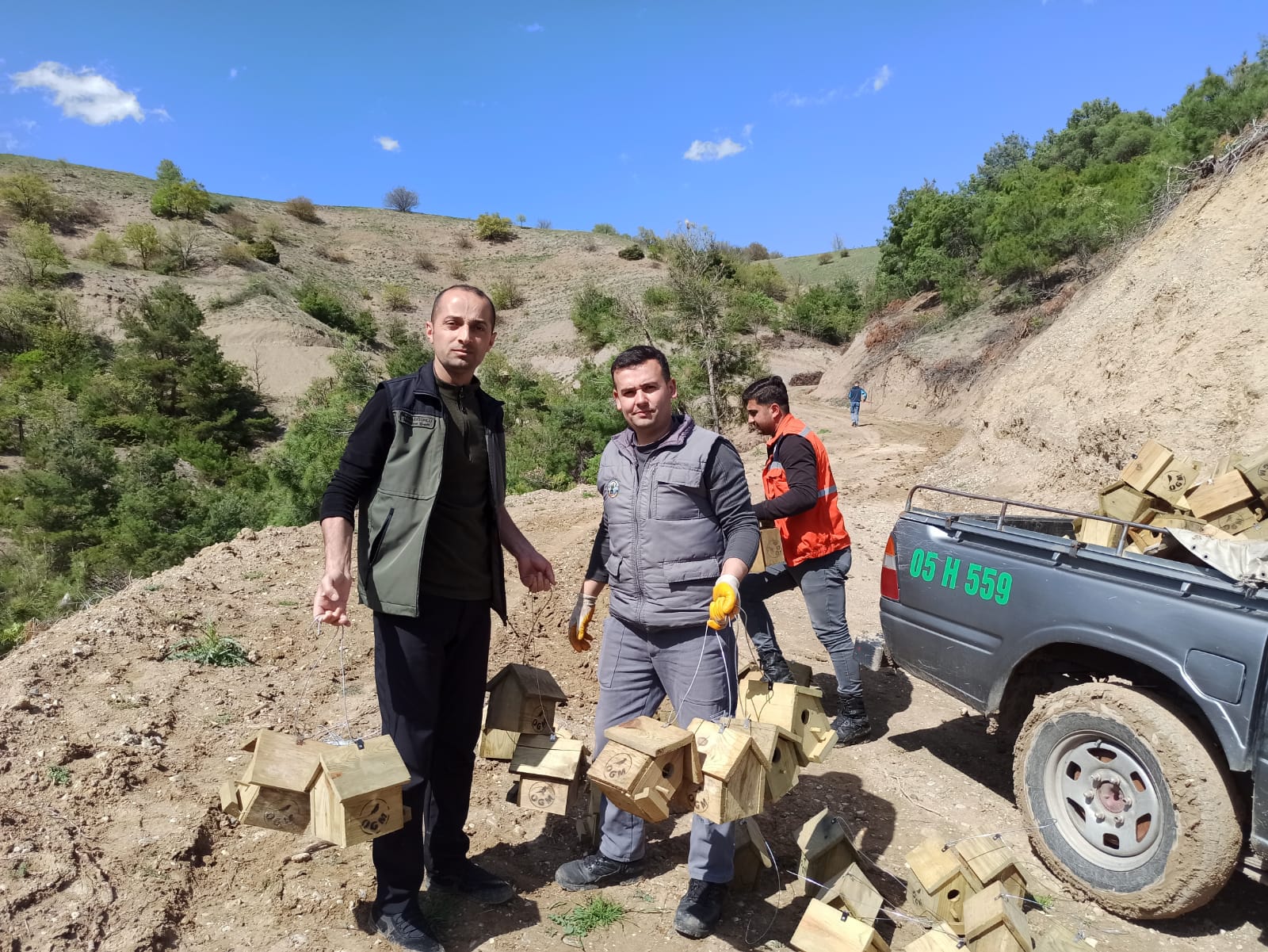 Bu kapsamda Taşova Orman İşletme Müdürlüğü Merkez İşletme Şefi Mustafa Uğurlu ve ekipleri tarafından Orman Zararlılarıyla biyolojik mücadele kapsamında önceden tespit edilen bölgelere yüzlerce kuş yuvası asıldı.