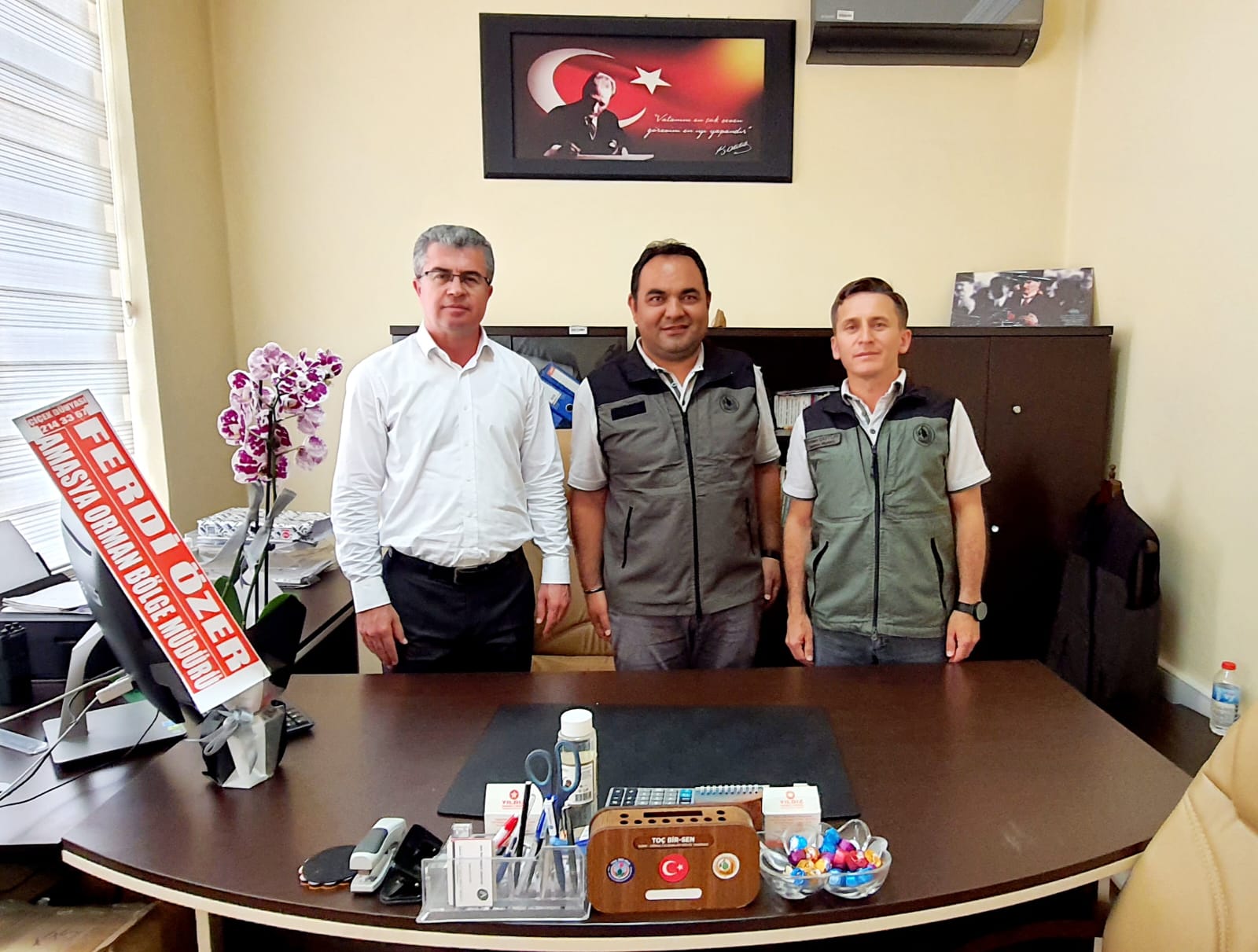 Tokat Orman İşletme Müdürlüğünü ziyaret eden Orman Bölge Müdürümüz Ferdi Özer yeni görevine başlayan İşletme Müdür Yrd Ekrem TÜRK’ü tebrik ederek yeni görevlerinde başarılar diledi.