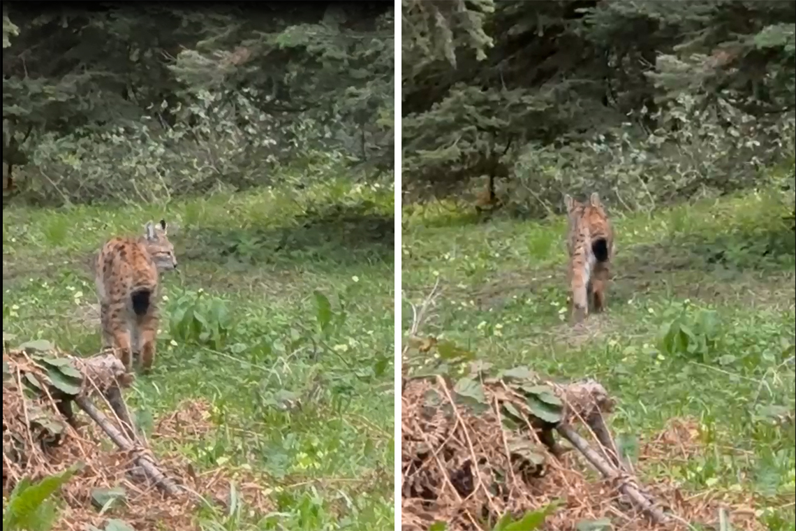 Vaşak bir süre etrafını izledikten sonra sakin bir şekilde ormanlık alana girerek gözden kayboldu.