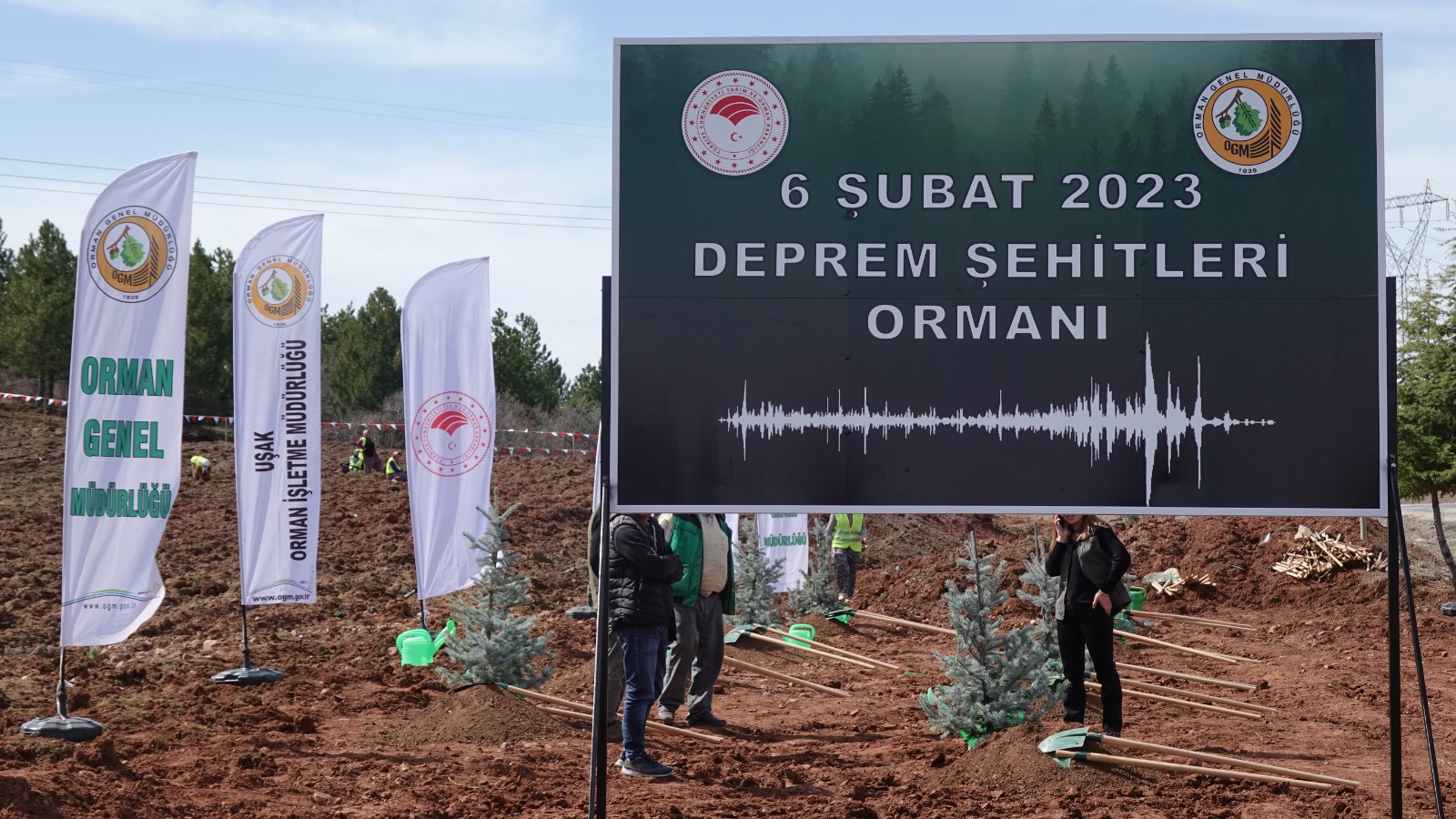 “Bir Fidan Bin Umut Olsun" 21 Mart ormancılık haftası etkinlikleri kapsamında Uşak ili Dağyenice köyünde “06 Şubat Deprem Şehitleri Ormanı" tesis edildi. Depremde şehit olan vatandaşlarımızın anısını yaşatmak üzere yapılan fidan dikim törenine, Uşak Vali Vekili Muammer BALCI, Uşak Belediye Başkan Yardımcısı Mehmet KURNAZ, il protokolü, Uşak'ta ikamet eden depremzede vatandaşlarımız ve öğrenciler ile vatandaşlar katıldı. Etkinlik sonrasında Valilik meydanında vatandaşlarımıza sedir fidanı dağıtımı yapıldı.