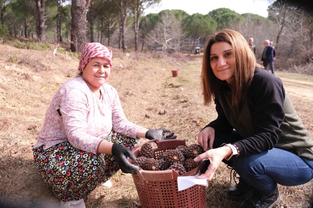 Türkiye'nin adeta çam fıstığı deposu olan İzmir'in Bergama İlçesi Kozak Yaylası fıstıkçamı ormanlarında kozalak hasatı yapan Karaveliler Mahallesi sakinleri yılda hane başına ortalama 600 bin TL gelir elde ettiklerini söylüyor.