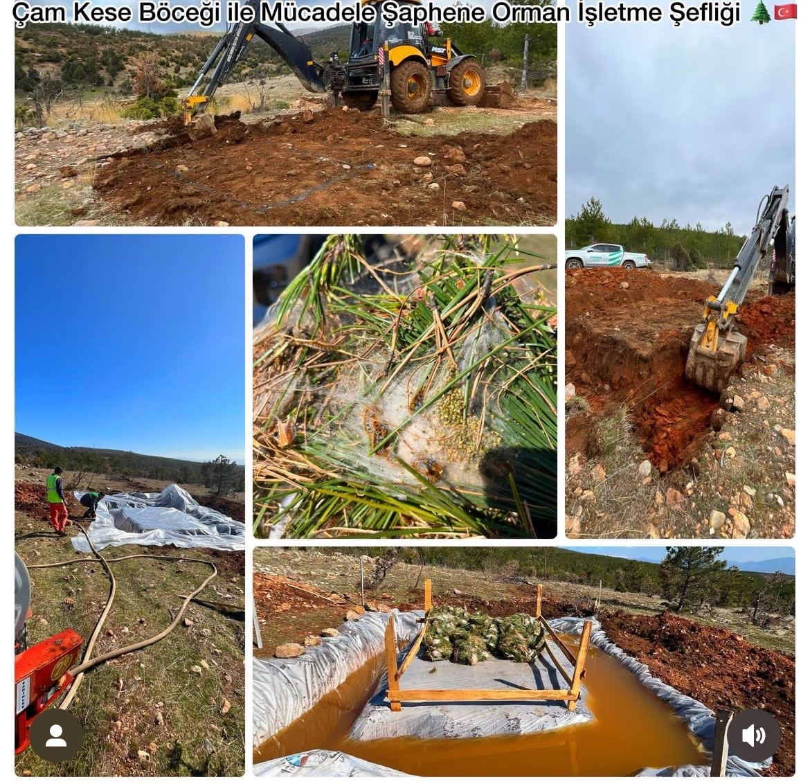 Bu kapsamda Gediz Orman İşletme Müdürlüğü Şaphane Şefliği 71,72,73,74 nolu bölmelerde çam ağaçlarında bulunan kesecikler makaslarla kesilerek hazırlanan etrafı su dolu adacıklarda biriktirilerek mücadele edilmiştir.