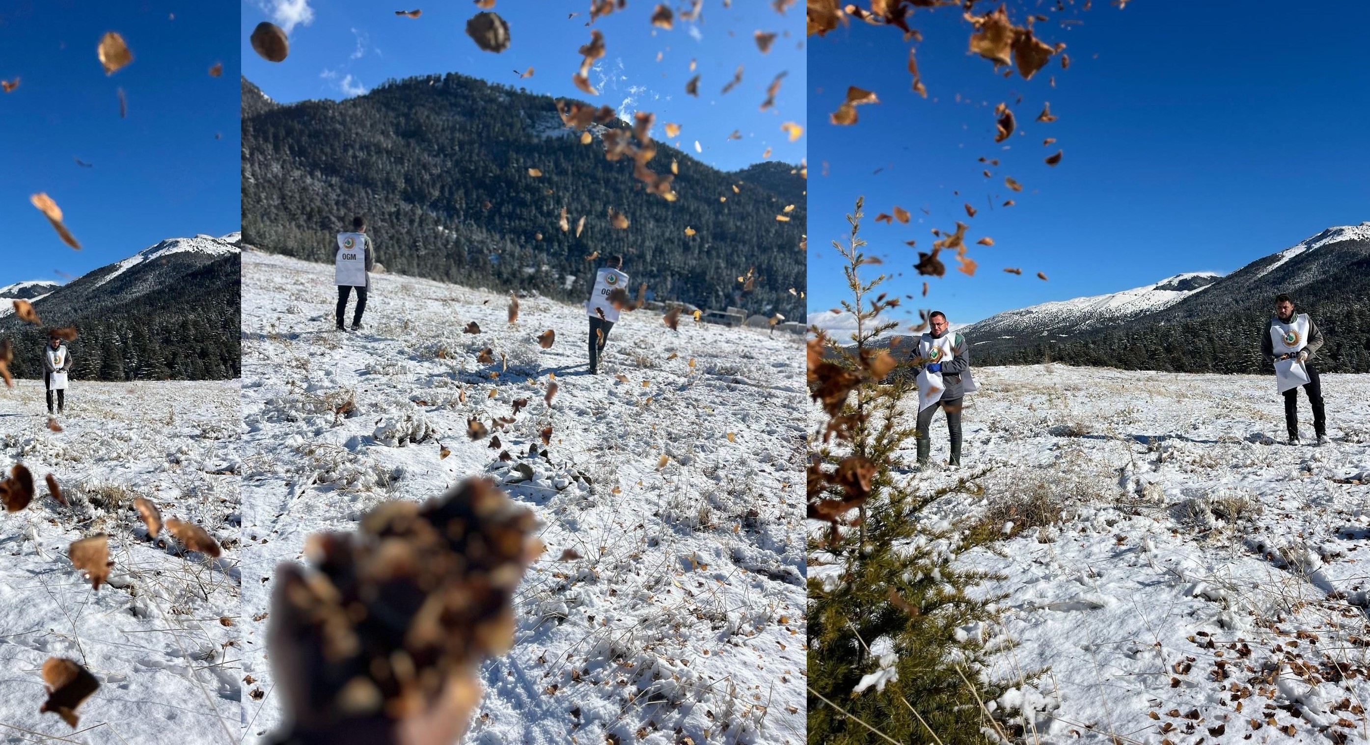 Kar altında atılan bu tohumlar, geleceğin güçlü sedir ormanlarının temeli olarak umut vadediyor, Yeşil Vatan'a nefes oluyor.