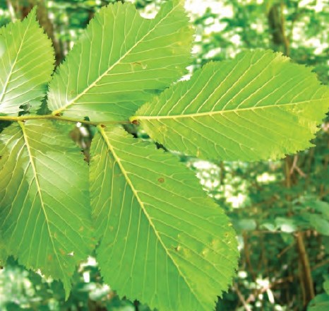 2.Yapraklar geniş, dairemsi, dip kısımları çok çarpık, dişler büyük ve 1.derece dişler çengel gibi ileriye doğru kıvrık, alt yüzü tüylü; çiçek ve meyveler saplı; meyve kanadın sap kısmına doğru kaymış ve kanat kirpiklidir: